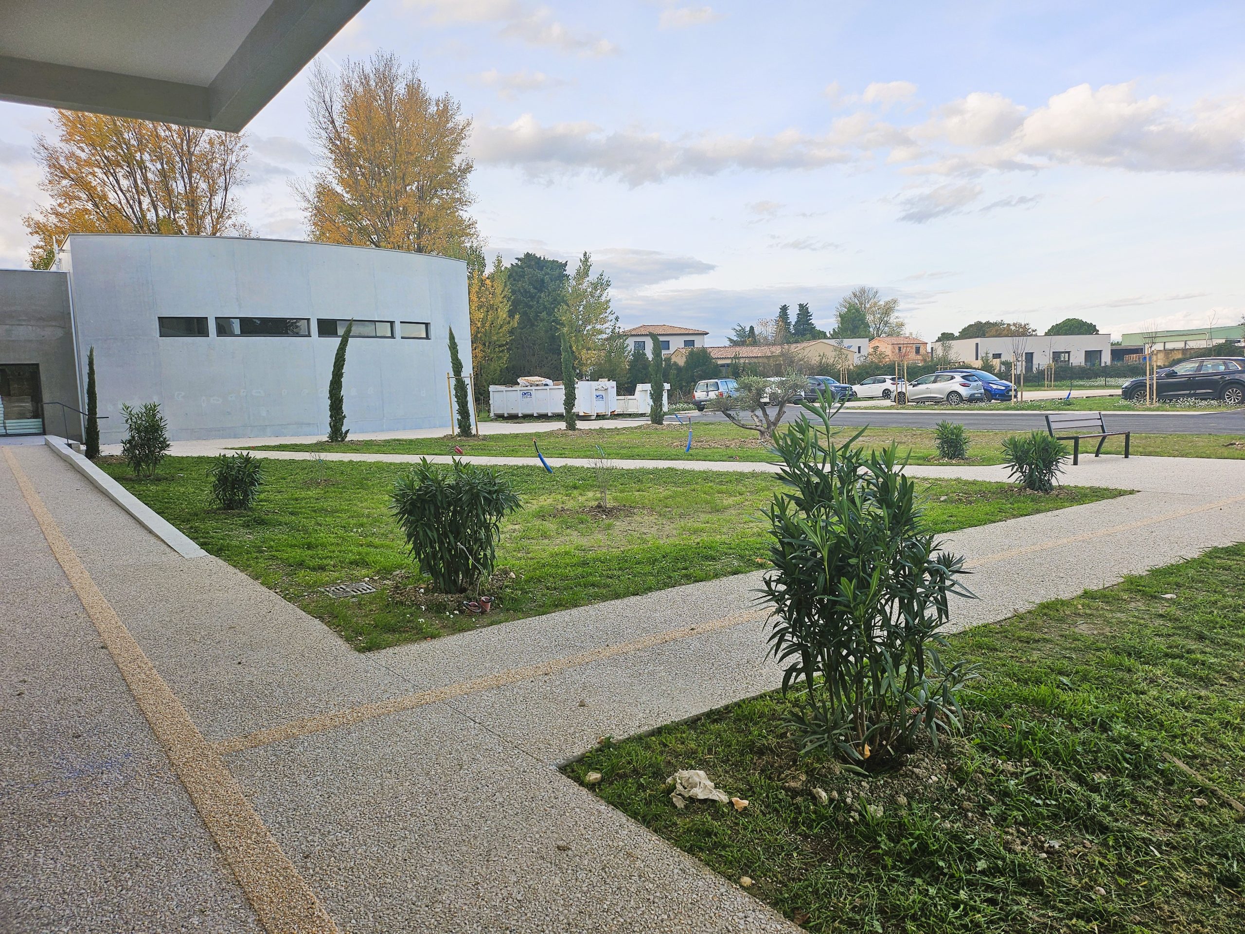 Ces travaux consistent en la mise en valeur des abords du bâtiment par la plantation d’arbustes, de massifs floraux et d’essences locales, contribuant ainsi à créer un environnement accueillant, harmonieux et respectueux de la biodiversité.
