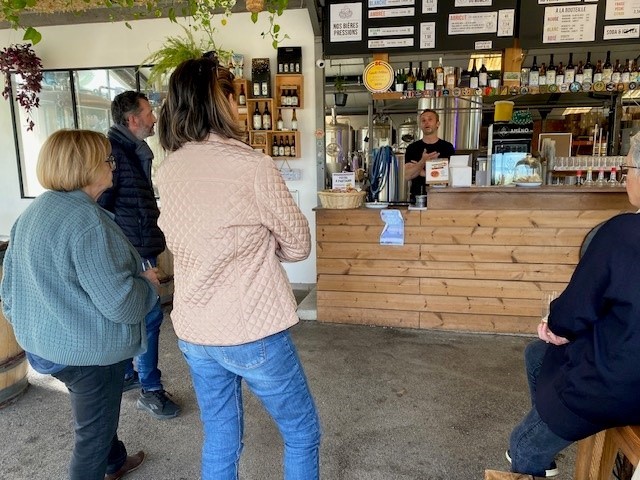 Pour cette visite nous sommes accompagnés de Julien MERLE, Président de la Communauté de communes, Vincent FAURE, vice-président délégué au développement économique et au tourisme, ainsi que des membres de la commission tourisme et commerce.